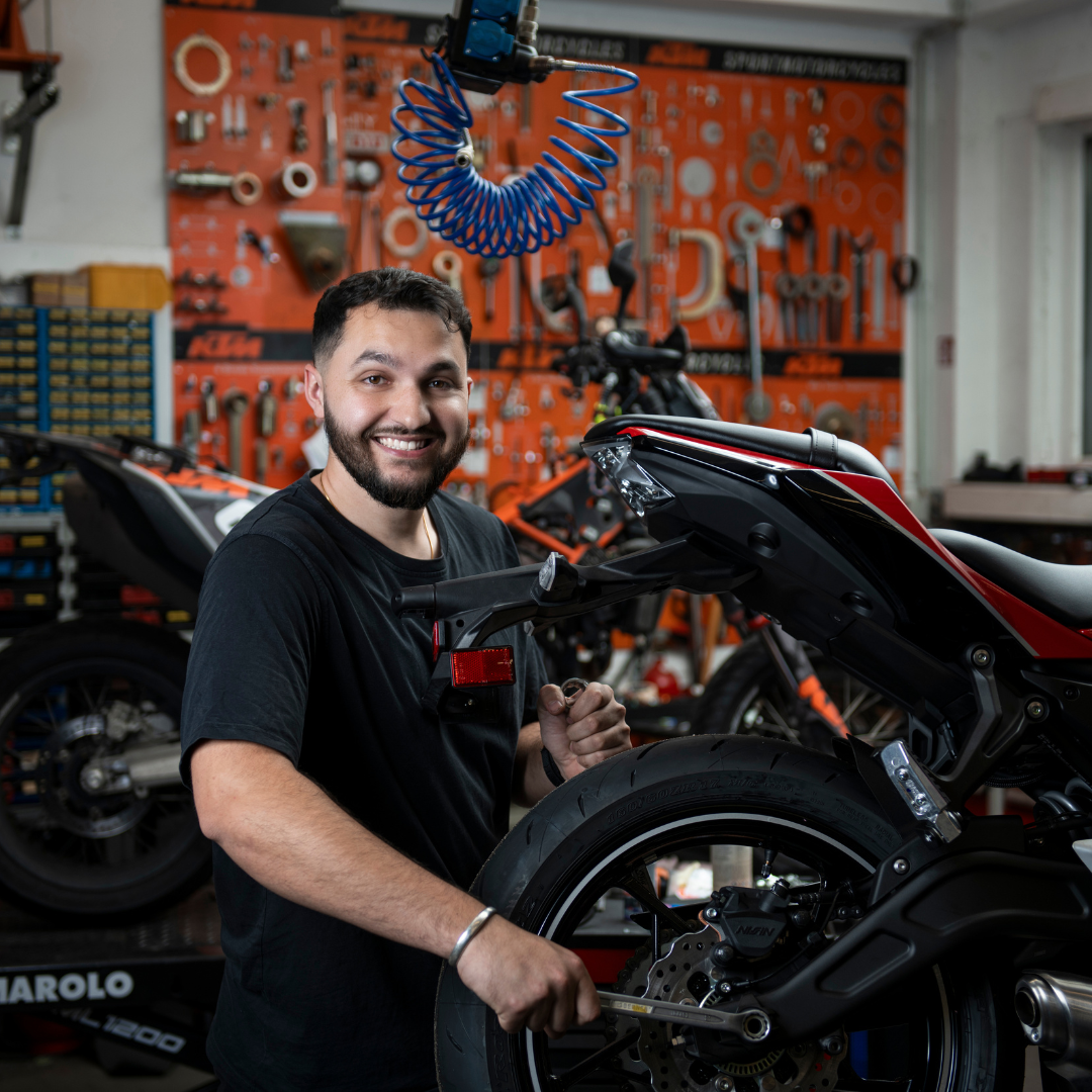Du baust Motorräder nach Kundenwunsch um und rüstest Zubehör nach.
